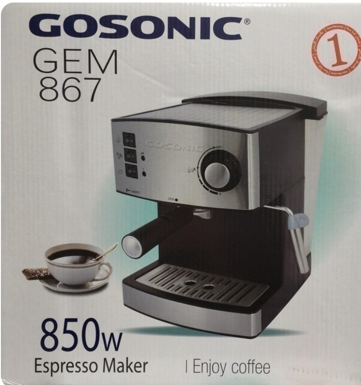 اسپرسو ساز گوسونیک مدل GEM-867 با بهره گیری از توان 850 وات و ایجاد فشار 15 بار، امکان تهیه یک اسپرسو و یا کاپوچینوی خوش طعم و عطر را با صرفه جویی در وقت مهیا می کند.بر روی بدنه استیل و پلاستیک اسپرسو ساز گوسونیک مدل GEM-867، دو نشانگر قرمز و سبز تعبیه شده تا جهت استفاده راحت تر، وضعیت روشن بودن یا آماده بودن دستگاه را نمایش دهند.