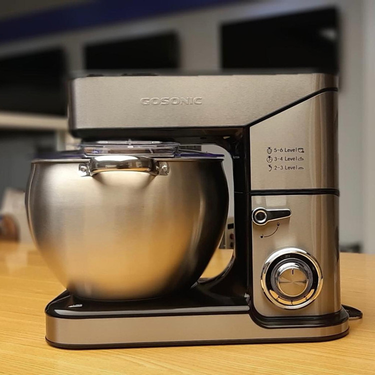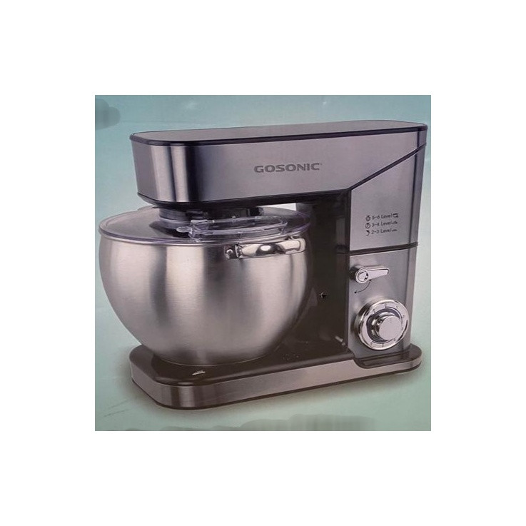 همزن گوسونیک مدل GSM-910 از آن دست محصولاتی است که وجودش برای پختن شیرینی، کیک، نان و ... در هر آشپزخانه ای ضروری است. این همزن که از سری همزن های قدرتمند و در واقع آخرین مدل از همزن های کاسه دار شرکت گوسونیک است، دارای کاسه ای 10 لیتری است که جنس آن از استیل ضدزنگ می باشد. همراه با این همزن، سه سری مختلف ارائه می شود که شامل سری همزن، خمیر زن و سری ورز دهنده می باشد. که استفاده از هر کدام بنا به نوع ماده ای که قصد مخلوط کردن آن را دارید میتواند مورد استفاده قرار گیرد. این سری ها فلزی هستند و با توجه به فاصله ای که از کاسه دارند، موقع استفاده از آن ها، به کاسه آسیبی وارد نمیکنند و با کمترین فاصله شروع به کار میکند. همزن گوسونیک مدل GSM-910 دارای قدرت 2000 واتی است و برای آن 6 سرعت مختلف تعبیه شده است که بنا به سختی ماده و نوع سری که از آن استفاده میکنید، میتواند متفاوت باشد. در کنار این تنظیمات سرعت، عملکرد پالس (لحظه ای) نیز وجود دارد که تمام این ها با استفاده از کلید ولومی مکانیکی تعبیه شده بر روی دستگاه قابل انتخاب می باشد. در نهایت باید این ویژگی مهم را یاداور شد که این همزن دارای درپوش می باشد که بر روی این درپوش، دریچه ای قرار گرفته شده که علاوه بر اینکه از پاشیدن مواد به خارج از کاسه جلوگیری میکند؛ دو امکان مهم را به شما میدهد: اول اینکه هنگام مخلوط کردن میتوانید مواد را مشاهده کنید و دوم اینکه میتوانید در هرزمان بدون نیاز به برداشتن درپوش، هر چیزی به مواد داخل کاسه اضافه کنید.