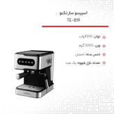 اسپرسو ساز تکنو مدل Te-819 با ظاهری زیبا و منحصر به فرد طراحی شده و با توجه به کیفیت ساختی که دارد، برای مصارف خانگی و یا کافه های کوچک انتخاب بسیار مناسبی می باشد. اسپرسو ساز تکنو مدل Te-819 با توان 1000 وات و فشار پمپ بخار 20 بار قادر است، در مدت زمان کوتاهی انواع نوشیدنی هایی همچون اسپرسو، کاپوچینو و لاته را با حفظ طعم واقعی تهیه نماید. همچنین نازلی در کنار اسپرسو ساز تکنو مدل Te-819 جهت تهیه کف شیر برای کاپوچینو تعبیه شده و سینی آن به صورت متحرک و چکه گیر می باشد که مانع از چکیدن مایعات از دستگاه می گردد .