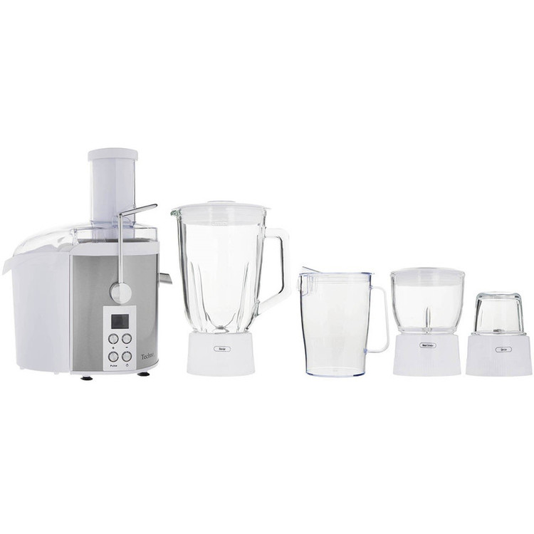 آبمیوه گیری تکنو مدل «Te-312» یک مجموعهی چهارکارهی پرکاربرد است که علاوهبر قابلیت آبمیوهگیری، از قطعات مخلوطکن، آسیاب و خردکن هم برخوردار است. پارچ شیشهای مخلوطکن در برابر تغییرات دمایی مقاومت زیادی دارد. ظرفیت این پارچ به 1.5 لیتر میرسد. تکنو با طراحی دهانهی ورودی بزرگ برای آبمیوهگیری، اجازهی ورود میوهها را به صورت درسته و بدون نیاز به برش به کاربر میدهد. به کمک اهرم پلاستیکی دستگاه میتوانید راحتتر میوهها را به سمت تیغه هدایت کنید. موتور دستگاه با توان 800 وات کار میکند و عملکردی قوی دارد. امکان تنظیم سرعت دستگاه در دو سطح وجود دارد. به این ترتیب میتوانید بسته به نوع میوه یا سبزیجات مد نظر، سرعت مناسب را برای کار دستگاه انتخاب کنید. بهعلاوه دستگاه Te-312 مجهز به عملکرد پالس است که در مواجهه با مواد سفت و سختتر کاربردی است. در ساخت صافی دستگاه از استیل استفاده شده و این قطعه در برابر زنگزدگی مقاوم است. این مدل به مخزن تفالهی 1.7لیتری مجهز است و به این ترتیب نظافت و تخلیهی دستگاه پس از کار آسان شده است. همچنین یک پارچ پلاستیکی برای نگهداری آبمیوه به همراه این مدل ارائه میشود. گنجایش این پارچ دردار به 850 میلیلیتر میرسد و میتوانید برای نگهداری آبمیوه در یخچال هم از آن استفاده کنید.