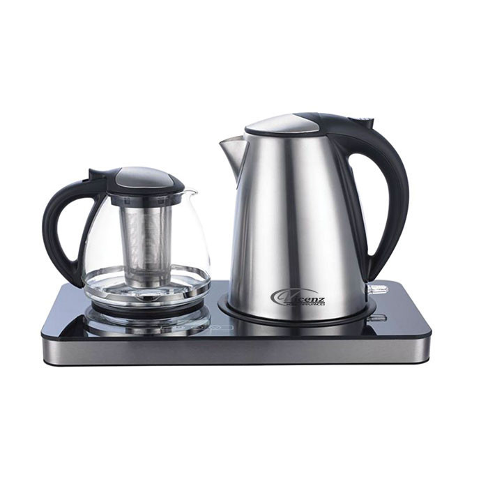 چای ساز ویکنز مدل VIC-460 با توان 2000 وات و صفحه نمایشگر کاملا لمسی همراه با کتری استیل با ظرفیت 1.5 لیتر و همچنین قوری از جنس پیرکس با ظرفیت 1 لیتر همراه با توری استیل ضد زنگ می باشد