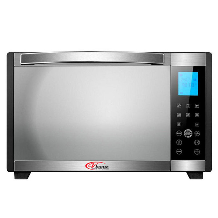 آون توستر ویکنز مدل VIC-340 با برخورداری از ظرفیت 50 لیتر و موتور قوی، امکان تهیه غذاهای حجیم، سالم و متنوعی را به راحتی و ظرف مدت کوتاهی فراهم می کند. ویکنز برای زیباتر کردن این آون، درب آن را به صورت رفلکس طراحی کرده که علاوه بر کیفیت ساخت فوق العاده بالا، زینت بخش آشپزخانه ها می باشد. پنل لمسی و صفحه نمایش دیجیتال از دیگر نقاط قوت آون توستر Vicenz VIC 340 محسوب می شود که افزون بر نمای ظاهری زیبا، کار با دستگاه را آسانتر می نماید. برای این آون 50 لیتری، یک سینی و توری در نظر گرفته شده تا بتوان به سهولت غذاها را گریل و کباب کرد و یا نان و شیرینی های خوشمزه ای را در آنها آماده نمود و یا به کمک جوجه گردان، یک مرغ کامل را برای میهمانان و یا خانواده بریان کرد. آون توستر 340 به عملکرد کانوکشن نیز مجهز شده که با ایجاد جریان یکنواخت هوای داغ، امکان پخت بهتر و مطلوب تری را بوجود می آورد. همچنین دمای داخل آون را بسته به نوع مواد غذایی، میتوان تا 250 درجه سانتی گراد تنظیم کرد و وجود تایمر قابل تنظیم باعث می شود تا در صورت فراموشی، غذاها نسوزند.