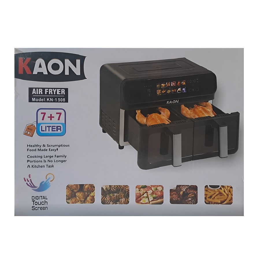 سرخ کن دوقلو کااون مدل 1508 یکی از محصولات جدید و با کیفیت شرکت کااون می باشد که ظرفیت هر ظرف آن 7 لیتر می باشد که ظرفیت این سرخ کن در مجموع 14 لیتر می باشد و قابلیت استفاده مجزا از هر ظرف را دارد صفحه نمایشگر رنگی لمسی سرخ کن 1508 کاون جلوه خاصی به این دستگاه می دهد که هر ظرف دارای توری جداگانه برای خروج روغن دارد طراحی زیبا و چشم نواز این سرخ کن توجه هر آدم سختگیری را به خود منعطف میکند