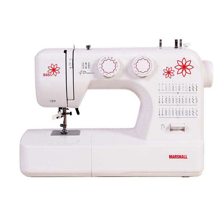 چرخ خياطي مارشال 945 داراي 36 مدل حاشيه دوزي و بيش از 50 مدل گلدوزي تركيبي مي باشد. اين چرخ خياطي مارشال با عرض گلدوزي 5 ميلي متر و حرکت جادکمه 4 زمانه امكان دوخت زيبا بر روي پارچه هاي نازك و ضخيم را دارد. سيستم قاب ماکو اين چرخ خياطي مارشال نيمه دور تمام فلز و داراي سيستم فشار پايه براي ضخامت پارچه هاي متفاوت مي باشد. مارشال 945 قابليت دوخت ساده ،گلدوزي ،تکه دوزي، زيپ دوزي ،دکمه دوزي ، لبه دوزي و جادکمه دارد. شاسي اين چرخ خياطي مارشال تمام فلز است و داراي بازويي آزاد متحرک جهت دور آستين مي باشد. مارشال 945 دارای سوزن نخ کن اتومات دارای طراحی و پرینت لیزری برجسته ( Digital Printing) دارای لامپ LED مي باشد.