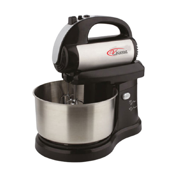 همزن ویکنز مدلVIC-916 از جمله لوازم خانگی است. که با ورود به حوزه وسایل برقی، مورد حمایت بسیاری از خانم های خانه دار قرار گرفت. این محصول دارای انواع مختلفی است. که همزن پروفی کوک مدل از جدیدترین نمونه های آن به حساب می آید. یکی از مزایای این مدل امکان تنظیم سرعت کارکرد آن بوده که تعداد تنظیمات سرعت آن 5 است.از ویژگیهای همزن ویکنز مدلVIC-916 قابلیت جابهجایی کاسه با کلید کناری آن است. سرعت های متنوع که ناشی از توان 400 تا 500وات سیستم است، باعث به وجود آمدن تنوع بالایی از کارایی ها می شود. درواقع شما تنها زمانی به سرعت های بالای سیستم دسترسی خواهید داشت که نیاز به هم زدن مواد غذایی سخت و فشرده ای دارید.همزن ویکنز مدل VIC-916 برخورداری از یک بدنه آلومینیومی سبب شده است. که جذابیت فوق العاده ای به مجموعه بخشیده شود. ظاهر نقره ای رنگ همچنین بسیار مدرن به نظر می آید. که در مقایسه با کیفیت آن فوق العاده است. جنس بدنه کاسه همزن ویکنز مدل VIC-916، تمام استیل بوده و توسط دو عدد دسته در طرفین قابلیت جابجایی آن را آسان کرده است . همچنین با وجود زائده هایی موجود در کف آن می توانید کاسه را بر روی پایه قفل کنید تا از تنش و تکان جلوگیری کنید.با فشار دادن یک اهرم بر روی بدنه، دسته با زاویه 35 درجه بالا می آید تا راحت تر بتوانید کاسه را بیرون آورید یا روی پایه بگذارید.