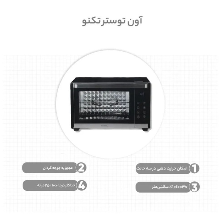 آون توستر دیجیتال لمسی تکنو مدل Te-551 سایز دارای جوجه گردان - فن {کانوکشن} - درب دو جداره - چراغ داخل فر - امکان حرارت دهی در سه حالت بالا ، پایین و هر دو همزمان - المنت حرارتی استیل ضد زنگ، صفحه نمایش دیجیتال لمسی تعداد طبقه:دو عدد قابلیت تنظیم دما حداکثر درجه حرارت:۲۵۰ درجه سانتیگراد تعداد قفسه: ۲ عدد اقلام همراه محصول : توری گریل - سیخ جوجهگردان - سینی لعابی - گیره سینی - دستگیره جوجه گردان : ٢.٨۵٠.٠٠٠ #جهیزیه_عروس#لوازم_خانگی#لوازم_برقی#لوازم_برقی_خانگی#عمده_فروشي#تهران#ایران#امین_حضور #بانه#بانه_کالا #حراج#خانه#خانهداری#خانه_داری#خانه_آشپزخانه#آون_توستر #آون_توستر_تکنو
